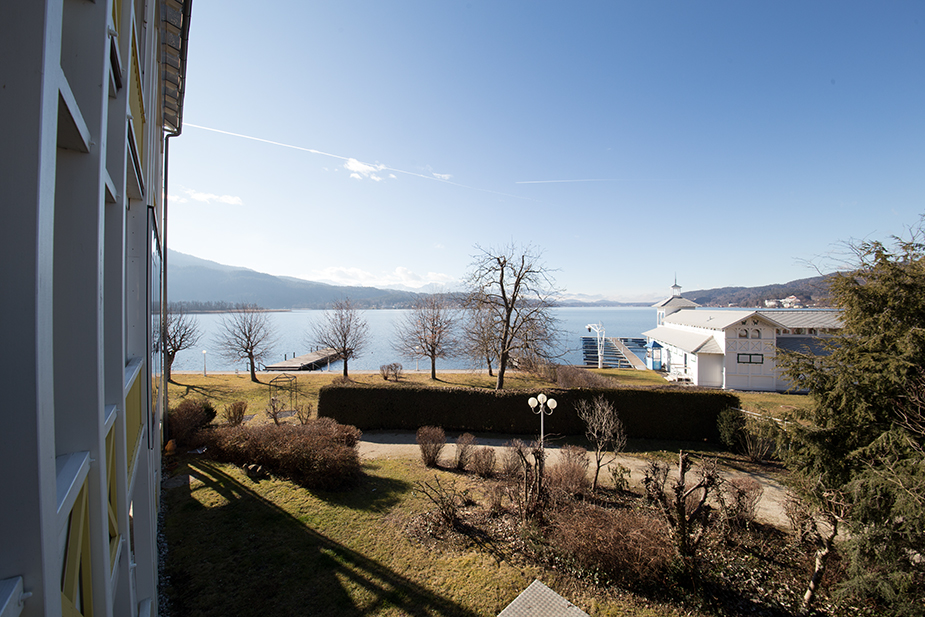 Wohn- und Schlafzimmer durch eine Türe getrennt, Sat – TV, Radio, Bad mit Fenster und WC getrennt, Fön, Kosmetikspiegel, kleine voll eingerichtete Küche, Vorraum, Wohnzimmer und Schlafzimmer mit Balkon und traumhaften Blick auf den Wörthersee.